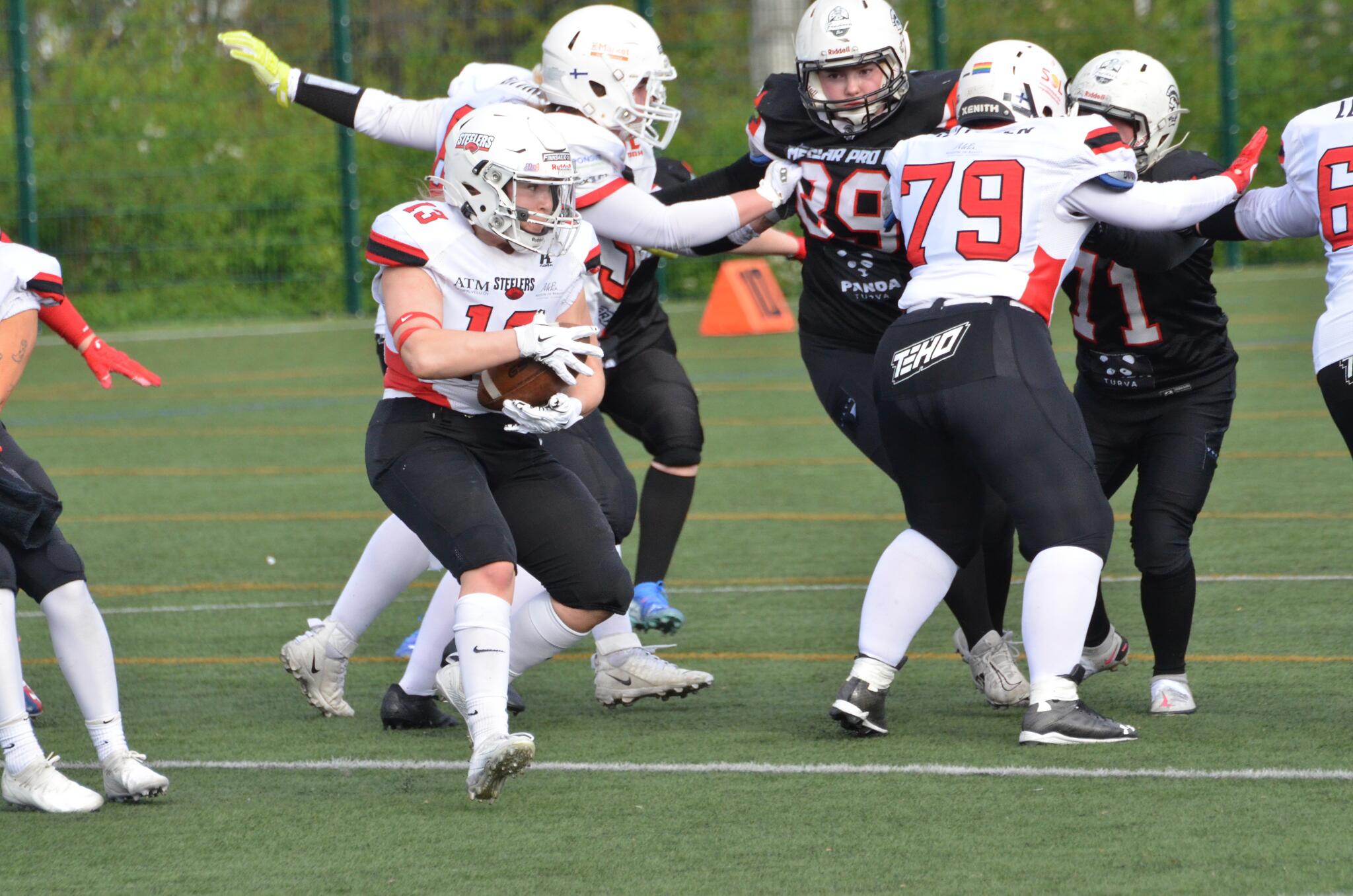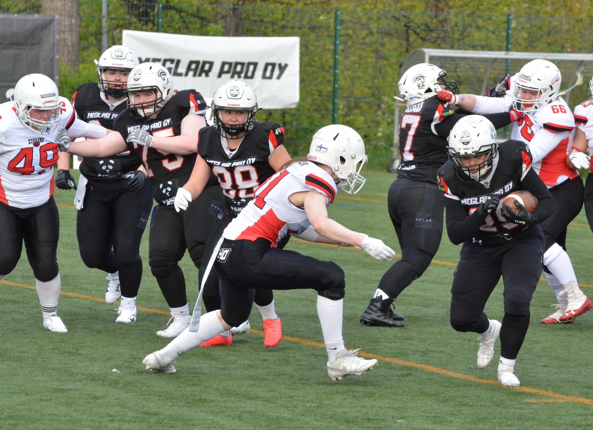 Puolustuksessa duo Kaisla Honkaniemi, Stella Martin kokosivat yhteensä 18,5 taklausta. Honkaniemi oli jatkuvasti Steelersin pelinrakentajan ja pallonkantajien kauhuna syöksymällä keskeltä silmille ja Stella Martin teki samaa linjan päästä aiheuttaen vastustajalle toistuvasti takapakkia.