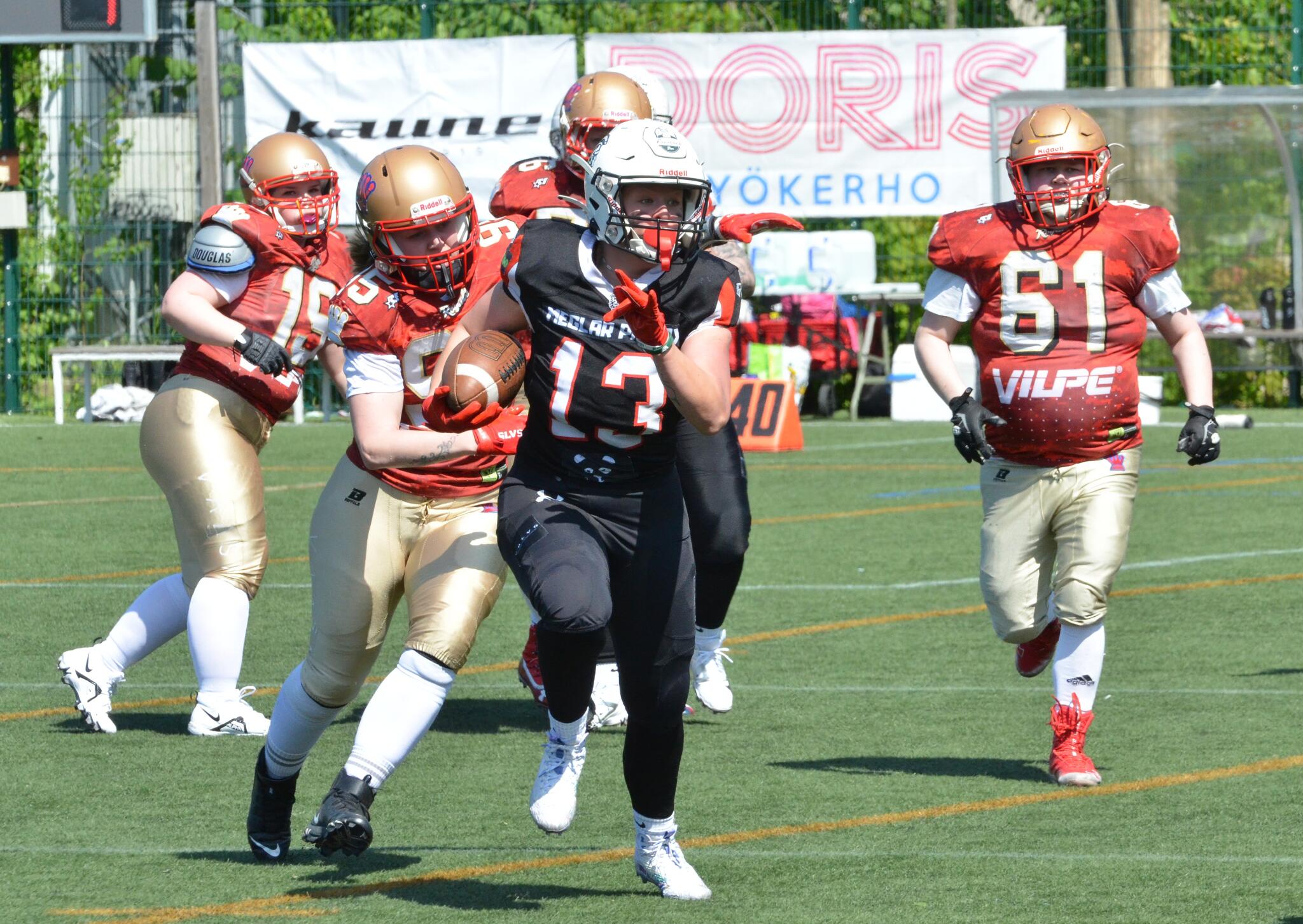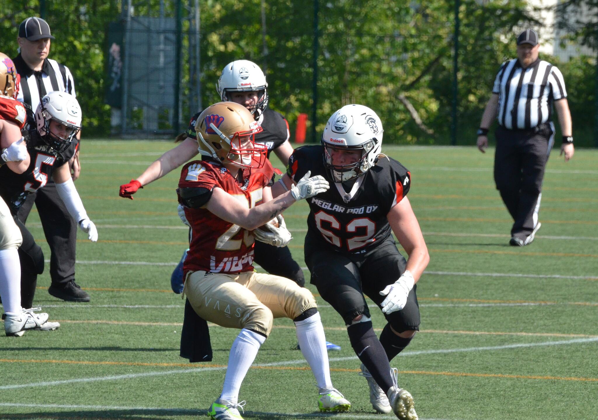 Päätösnumeroihin 41–0 päädyttiin, kun peliaikaa oli jäljellä vielä noin 8 minuuttia. Pitkän loukkaantumisesta johtuneen tauon jälkeen Trojans sai pallon syvällä vaasalaispäädyssä. Ensin Nova Sernler juoksi pallon noin viiden jaardin päähän maalialueesta ja heti perään Olmedo Giler murjoi pelivälineen puuttuneet jaardit ja maalilinjan yli. Pulkkinen viimeisteli vielä potkullaan yhden pisteen lisää ja päätti näin tämän ottelun pistepeijaiset.