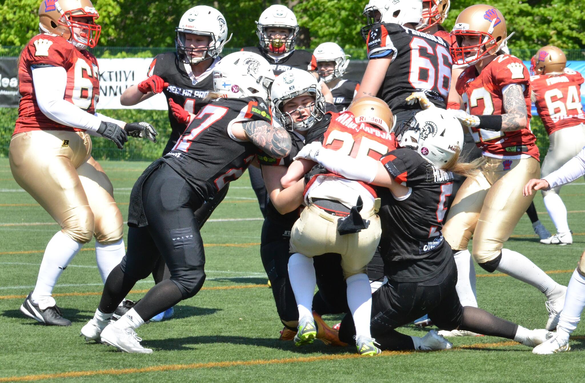 Royals sai paremmin etenemistä kuin edellisessä ottelussaan Wolverinesia vastaan, kun juoksujardeja kertyi 75 ja heittopeleillä 39 eli yhtensä 114 jaardia. Ahkerin pallonkantaja oli Mira Mäki-Haapoja 60 jaardillaan kaikkiaan 24 kannolla. Siihen päälle vielä 17 heitoilla edettyä jaardia ja yhdeksän jaardia potkunpalautuksista tarkoittaa, että Mäki-Haapoja keräsi reilusti yli puolet Royalsin koko jaardisaaliista. Puolustuksessa ansioituivat Venla Niininen 3+8, Tytti Tiainen, kaksi säkitystä, ja Oona Saarinen, syötönkatko.